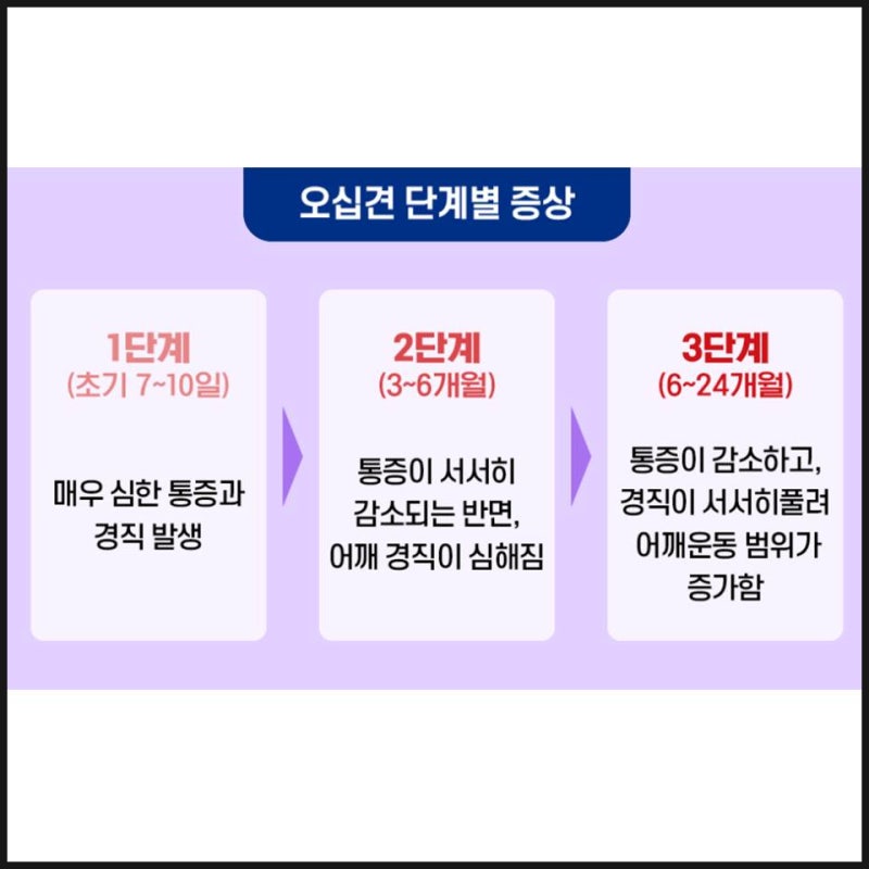 오십견은 어깨 관절이 뻣뻣해지고 극심한 어깨 통증으로 팔을 올리기 힘든 경우가 많다. 다음과 같은 증상이 나타나면 오십견을 의심하고 적절한 치료를 받는 것이 좋습니다. 갑자기 어깨 통증이 시작되어 자다가 깨게 됩니다. 어깨를 움직일 때도 어깨 관절이 뻣뻣하고 통증이 있습니다. 이동하지 않습니다. 팔을 올리거나 구부릴 때 염좌와 통증이 느껴진다. 목 뒤나 반대쪽 어깨 뒤는 샤워 시 손이 닿기 힘든 부위입니다. 등의 단추나 지퍼가 어렵습니다. 옷만 입고 벗기가 어렵습니다. 멀리서 물건을 집거나 반찬을 집기 위해 선반에 손을 뻗는 것은 어렵다. 아프고 계속됩니다. 통증은 어깨 뒤쪽에서 앞쪽으로 팔 아래로 이동합니다. 손에서 손으로 고통. 오십견의 경우 어깨 통증 부위가 시간이 지남에 따라 변할 수 있습니다.