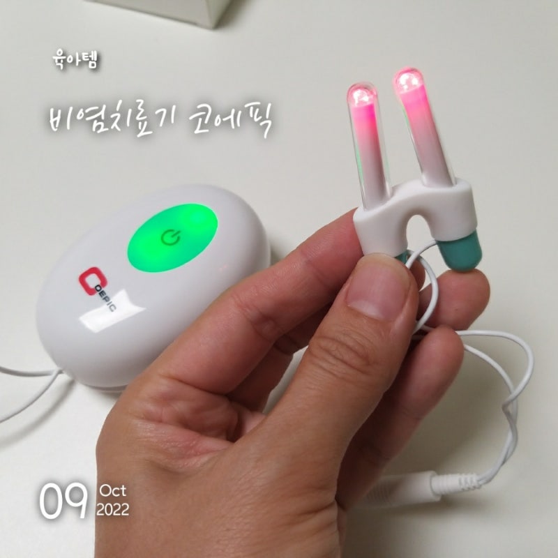 프로브의 색이 있는 끝을 누르면 프로브의 끝이 움직여 콧구멍의 넓이에 맞게 조절하여 사용할 수 있습니다!!! 꼼꼼하게 잘 제작되는 것 같았습니다.프로브를 사용하려면 로프를 길게 풀어야 하지만 본체 옆으로 말아 깔끔하게 보관할 수 있습니다.본체는 한 손에 쏙 들어가는 디자인과 크기 때문에 들고 다니면서 사용할 수 있습니다. 휴대성이 좋기 때문에 책을 읽거나 TV를 보는 등 어떤 활동에도 제약 없이 사용하기 쉽습니다.함께 들어 있는 AAA 건전지를 본체에 넣고 직관적인 본체 스위치를 누르면 녹색 불이 켜지고 전원이 켜집니다.프로브 양쪽으로 적색 광선과 근적외선이 나옵니다. 적색광선은 염증과 혈액순환을 개선하는 역할, 근적외선은 히스타민 방출을 억제하고 알레르기 항원에 대한 민감한 면역반응을 감소시키는 역할의 빛입니다. 코에 넣은 상태에서 전원을 누르면 불이 켜져 코에 픽이 시작됩니다. 프로브는 빛이 1~1.5cm가 콧속으로 들어갈 수 있도록 넣어주세요. 하루에 3번, 3분씩 최대 10번까지 사용하시면 됩니다!!!!봉봉열매 대디도 써봤어요~~~ 처음에는 이게 뭐라고 효과가 있냐고 물었더니 해보니까 생각보다 마음에 드는 것 같아요.흐흐흐할 때는 별 느낌도 없고 특별한 건 없는 것 같다고 하는데 아침에 일어나 보니 확실히 코가 막히는 일이 적은 것 같다고 하더라고요.사실 아빠 코가 빨개진 게 신기한지 자꾸 찔러보고 자기 코도 해달라고 친코를 찔러보기도 해요. 코에픽은 만 5세 이상부터 사용할 수 있다고 하니 사실 더 크면 해주고 싶어요.코에픽은 영국 Worcestershire 왕립병원 임상시험을 통해 알레르기 비염 증상 개선에 효과가 있음이 입증되었다고 합니다~~~봉봉 열매 대디도 꾸준히 사용해 보기로 했습니다.~~지속적으로 사용해보시고 비염 증상이 호전되었으면 좋겠네요~~ 간편하게 사용할 수 있는 가정용 비염 치료기 코에픽을 사용해보세요. 흐흐흐흐사실 아빠 코가 빨개진 게 신기한지 자꾸 찔러보고 자기 코도 해달라고 친코를 찔러보기도 해요. 코에픽은 만 5세 이상부터 사용할 수 있다고 하니 사실 더 크면 해주고 싶어요.코에픽은 영국 Worcestershire 왕립병원 임상시험을 통해 알레르기 비염 증상 개선에 효과가 있음이 입증되었다고 합니다~~~봉봉 열매 대디도 꾸준히 사용해 보기로 했습니다.~~지속적으로 사용해보시고 비염 증상이 호전되었으면 좋겠네요~~ 간편하게 사용할 수 있는 가정용 비염 치료기 코에픽을 사용해보세요. 흐흐흐흐