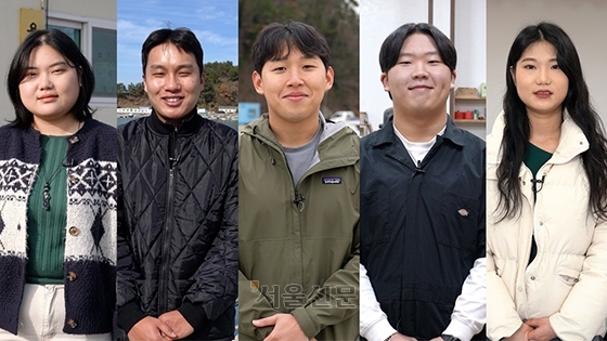 완도군 청년공동체 ‘완망진창’ 회원들. 왼쪽부터 김유솔(26) 완망진창 대표, 김호진(25), 김민우(25), 방현기(20), 김유진(24).