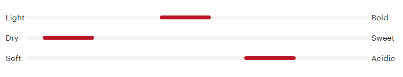 옅은 노란색과 약간의 초록빛, 풋사과의 풍부한 시트러스 향, 허브 노트, 균형잡힌 부케의 맛과 입안의 산도, 좋은 미네랄 여운. 약간의 녹색을 띠는 연한 황금색을 띠며 감귤류, 파인애플, 흰 꽃의 강한 향이 두드러집니다. 청사과, 자몽주스 등의 풍부한 향과 우아한 허브향, 신선한 산도, 균형잡힌 미네랄리티가 어우러진 우아한 화이트 와인입니다.