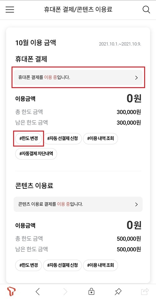 이러한 방법으로 설정되어 있는 값을 올리거나 낮게 설정할 수 있습니다. 아무래도 제가 필요하지 않은 부분인 것 같으면 아예 넘어가지 않게 차단하면 소액결제가 일절 이뤄지지 않습니다.아무래도 사람마다 소비생활이 다르기 때문에 각자의 사정에 맞는 정도를 설정해 두면 문제 없을 것 같습니다.