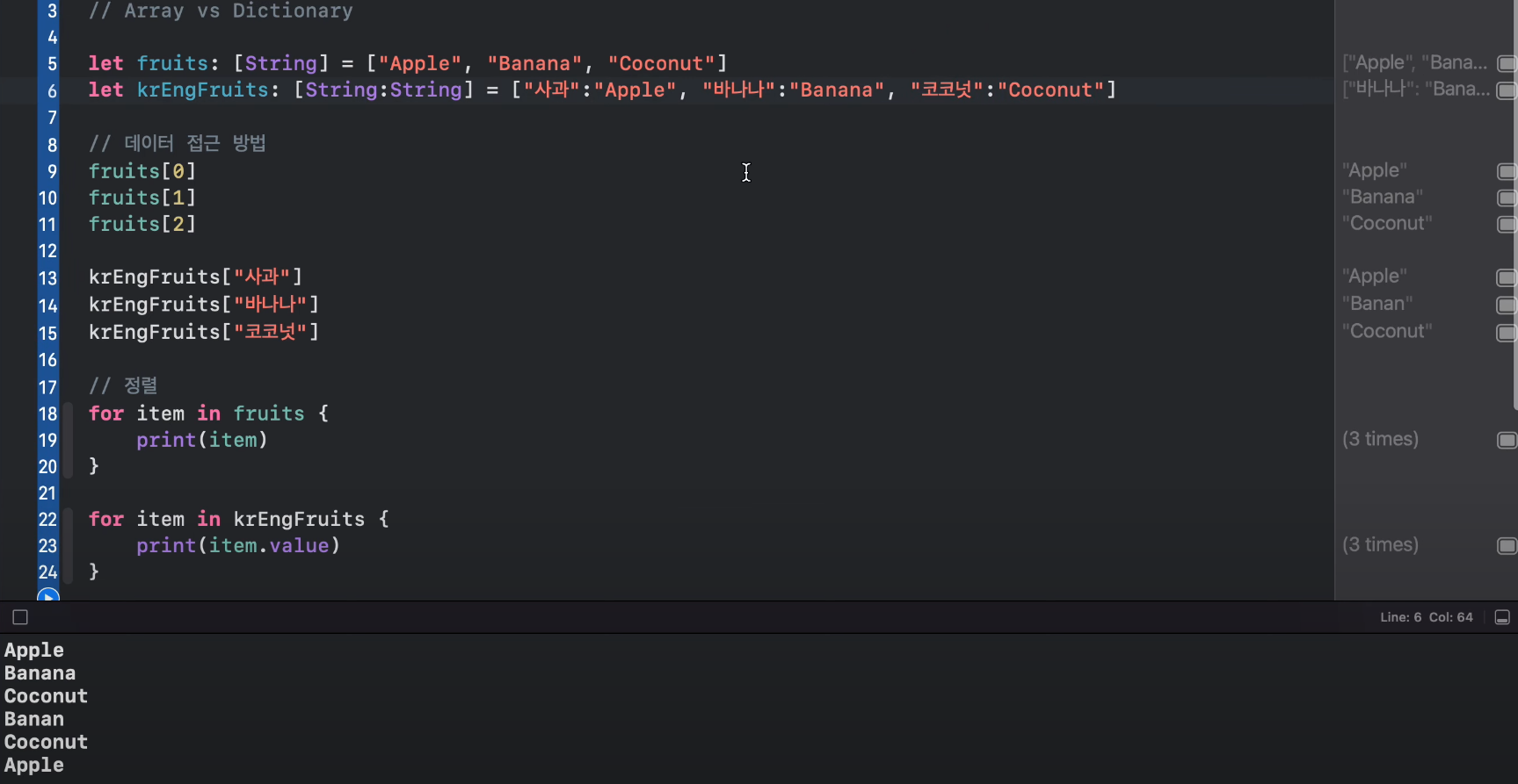 배열 출력 확인